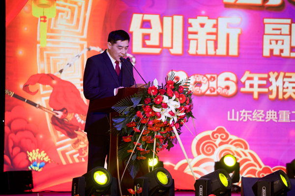 2月1日,山東經(jīng)典重工集團(tuán)股份有限公司在宴會(huì)中心舉辦“創(chuàng)新 融合 升級(jí)”2016年猴舞新春團(tuán)拜會(huì),慶祝新春佳節(jié)的到來。經(jīng)典集團(tuán)各子、分公司部分員工及家屬代表千余人參加團(tuán)拜會(huì)。
