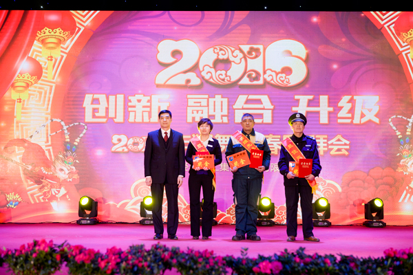 經(jīng)典集團(tuán)董事長(zhǎng)苗樹文首先致新春賀詞,對(duì)2015年集團(tuán)取得的成績(jī)進(jìn)行了總結(jié),鼓舞全體員工精誠(chéng)團(tuán)結(jié)、奮發(fā)有為,實(shí)現(xiàn)2016年經(jīng)典產(chǎn)業(yè)轉(zhuǎn)型升級(jí)、創(chuàng)新發(fā)展、融合發(fā)展,并向全體參會(huì)人員和社會(huì)各界朋友致以新年的問候。總經(jīng)理杜福生宣讀了《關(guān)于2015年度優(yōu)秀員工和最佳團(tuán)隊(duì)的表彰決定》,通過表彰獎(jiǎng)勵(lì),營(yíng)造了廣大員工學(xué)習(xí)先進(jìn)、爭(zhēng)當(dāng)楷模的濃厚氛圍。