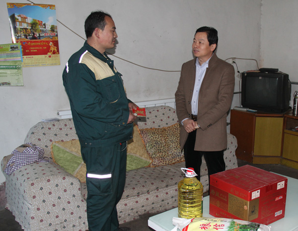 每到一戶,集團領(lǐng)導(dǎo)與職工家屬親切握手,面對面促膝交談,了解職工的家庭收入、子女入學(xué)、生活實際困難情況。送去大米、面粉、食用油等生活物資及600元公司慰問金,集團領(lǐng)導(dǎo)鼓勵職工振奮精神,充滿信心,相信集體,克服眼前困難。