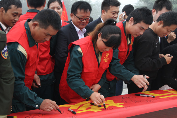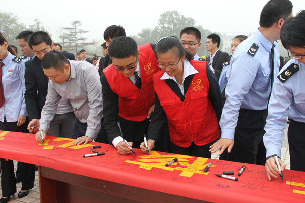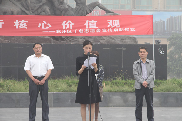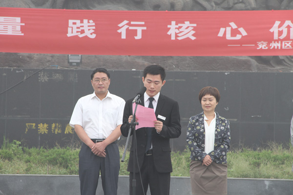 儀式由王仁娜副區(qū)長(zhǎng)主持。區(qū)委宣傳部副部長(zhǎng)邢衛(wèi)紅宣讀了《兗州區(qū)弘揚(yáng)社會(huì)正能量踐行核心價(jià)值觀倡議書(shū)》。集團(tuán)公司志愿者卞中凱作為全區(qū)企業(yè)屆代表作了表態(tài)發(fā)言。儀式上頒發(fā)了活動(dòng)宣傳書(shū)籍和資料。初建偉部長(zhǎng)作了重要講話?;顒?dòng)最后,廣大志愿者們?cè)诨顒?dòng)條幅上鄭重簽下了自己的名字。