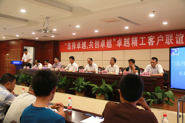 會(huì)議上,卓越精工總經(jīng)理劉海龍介紹了卓越精工一年來的發(fā)展歷程及基本情況,劉總在發(fā)言中談到,10個(gè)月300多天,卓越人保持了創(chuàng)業(yè)激情,沒日沒夜地干,經(jīng)歷了創(chuàng)業(yè)期的風(fēng)風(fēng)雨雨,承受了前所未有的壓力,戰(zhàn)勝了無數(shù)困難和挑戰(zhàn)才有了今天,我們忘不了政府領(lǐng)導(dǎo)在建廠時(shí)幫我們征地跑政策手續(xù)落實(shí)水電氣確保了工程進(jìn)度、忘不了中國(guó)有色金屬研究院的專家們給我們的技術(shù)支持幫我們克服了技術(shù)難關(guān),更忘不了我們前期在做市場(chǎng)推廣時(shí)遇到困難給予我們幫助和支持的你們特別是臨沂市場(chǎng)張學(xué)好總經(jīng)理做了我們公司的第一個(gè)代理經(jīng)銷商,正是你們大家給了我們卓越人信心和動(dòng)力!之后,劉海龍總經(jīng)理詳細(xì)介紹了公司經(jīng)營(yíng)理念、人才、設(shè)備、產(chǎn)品、市場(chǎng)等方面的情況,給與會(huì)嘉賓以極大的鼓舞。