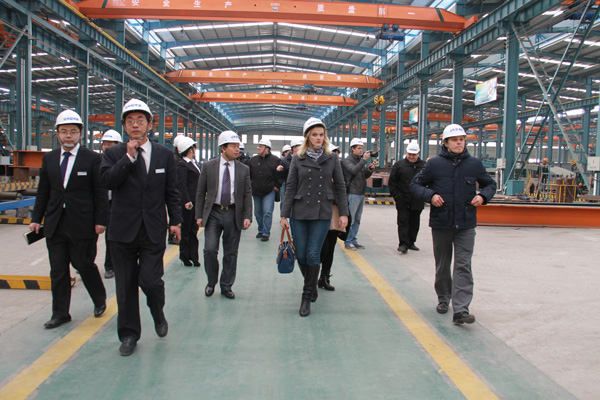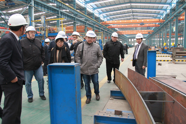 俄羅斯考察團(tuán)首先參觀了經(jīng)典集團(tuán)11萬(wàn)平方米的輕鋼重鋼生產(chǎn)車間,就鋼結(jié)構(gòu)生產(chǎn)工藝、生產(chǎn)流程、技術(shù)設(shè)備、車間管理等方面與經(jīng)典集團(tuán)高層進(jìn)行了交流。隨后考察團(tuán)參觀了經(jīng)典集團(tuán)文化館、工程中心、設(shè)計(jì)院和技術(shù)部,進(jìn)一步了解了經(jīng)典集團(tuán)企業(yè)文化、產(chǎn)學(xué)研合作、工程設(shè)計(jì)、技術(shù)分解和技術(shù)創(chuàng)新等有關(guān)情況。