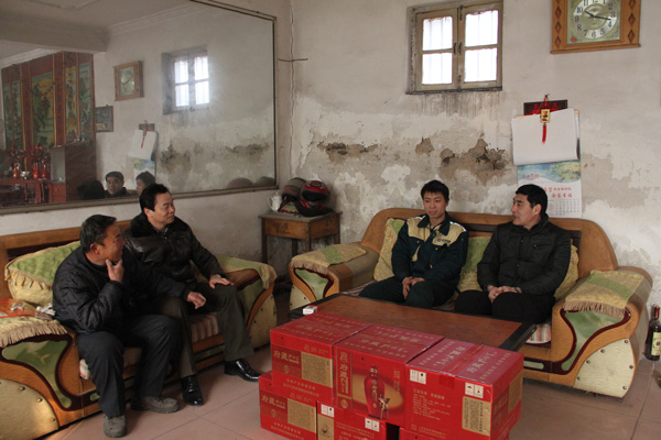 每到一戶,集團(tuán)領(lǐng)導(dǎo)與職工家屬親切握手,面對(duì)面促膝交談,了解職工的家庭收入、子女入學(xué)、外出打工等有關(guān)情況,送去大米、面粉、食用油等生活物資和600元慰問金。苗董事長(zhǎng)表示,經(jīng)典集團(tuán)將一如既往的關(guān)愛職工,特別是困難家庭職工,讓職工感受到公司大家庭的溫暖,切實(shí)解決職工的生活困難,使職工全身心投入到公司發(fā)展中去。并叮嚀他們?nèi)缛粲惺裁蠢щy可以提出來(lái),集團(tuán)公司會(huì)傾力幫助,公司就是一個(gè)大家庭,每位職工困難,都會(huì)牽動(dòng)整個(gè)領(lǐng)導(dǎo)班子的心,集團(tuán)公司會(huì)盡最大努力,想盡一切辦法,最大限度地讓每位困難職工及其家屬過上一個(gè)安樂祥和的春節(jié)。