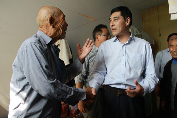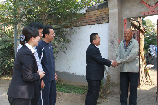 集團(tuán)公司董事長(zhǎng)苗樹文到興隆莊鎮(zhèn)敬老院,與老人親切交談
