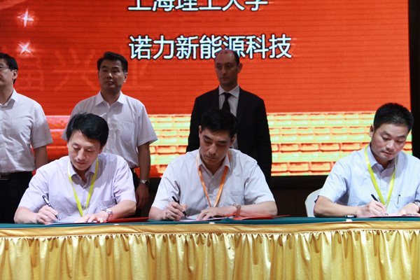 經(jīng)典集團董事長苗樹文(中間)上海理工大學食品與醫(yī)療器械學院院長劉寶林(左一)共同出席首輪簽約儀式
