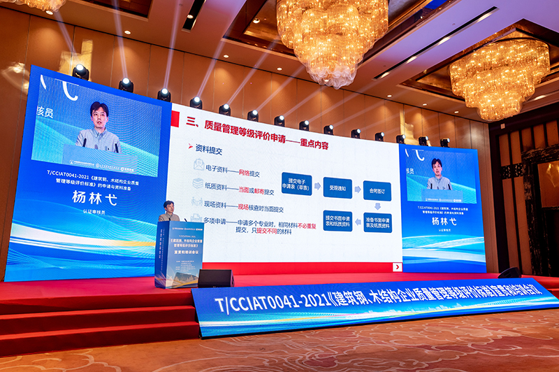 認(rèn)證審核員楊林弋對(duì)建筑鋼、木結(jié)構(gòu)企業(yè)質(zhì)量管理等級(jí)評(píng)價(jià)流程、資料情況進(jìn)行了介紹。
