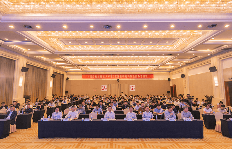 中國鋼結(jié)構(gòu)協(xié)會常務(wù)副會長劉毅、中國寶武集團(tuán)首席專家賀明玄、金環(huán)建設(shè)集團(tuán)有限公司總工程師、副總裁張強(qiáng)、中冶建筑研究總院有限公司副總工程師吳耀華、中國鋼結(jié)構(gòu)協(xié)會秘書長李慶偉、副秘書長戴長河、山東省鋼結(jié)構(gòu)行業(yè)協(xié)會會長周學(xué)軍、副秘書長劉哲等領(lǐng)導(dǎo)專家出席活動,來自全國各地鋼結(jié)構(gòu)制造企業(yè)的200余名代表參加培訓(xùn)。