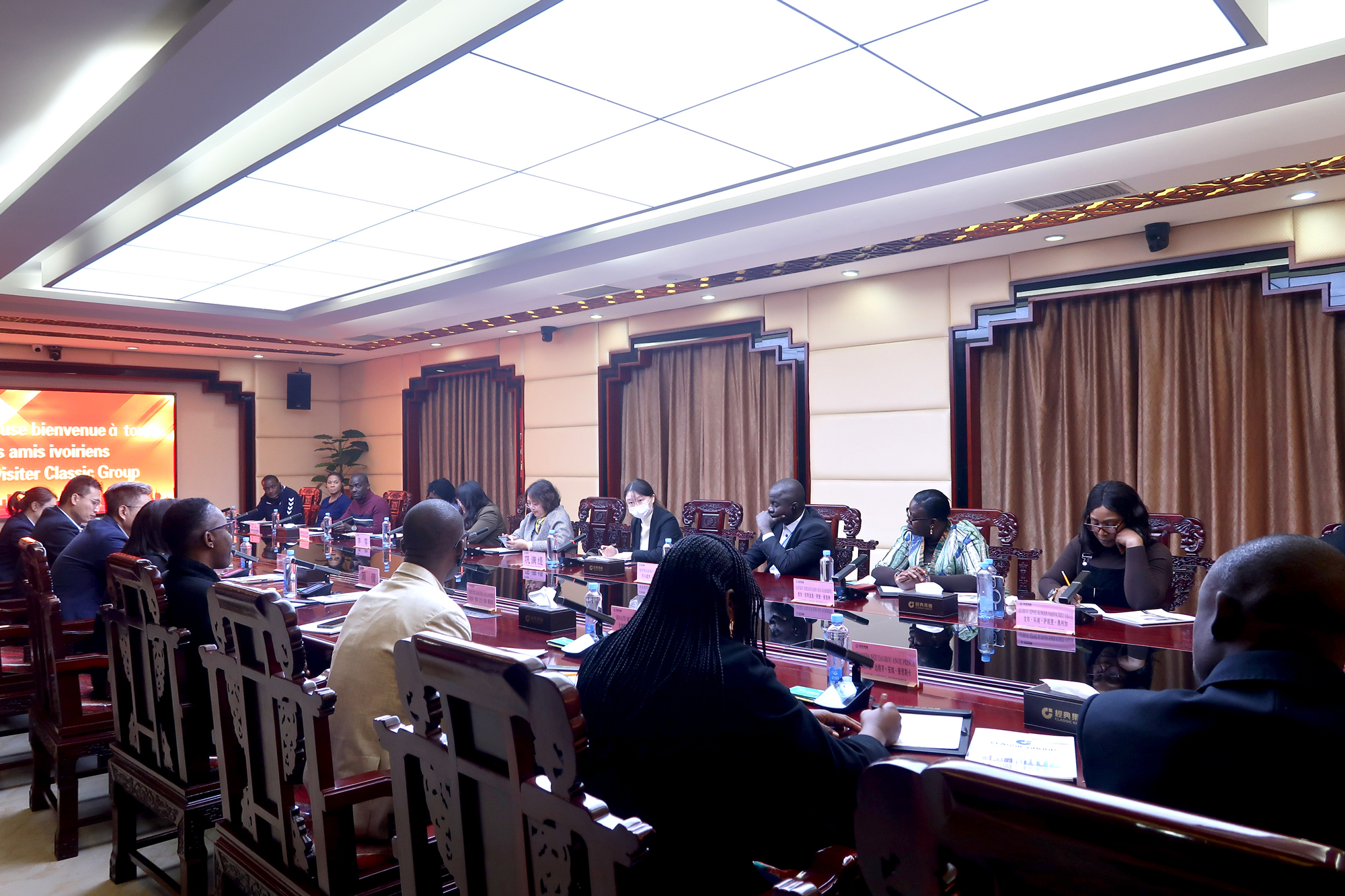 研修班學(xué)員先后參觀了經(jīng)典集團(tuán)凱思諾智能化生產(chǎn)線、中冶智能化生產(chǎn)車間以及高端裝配式建筑集成房屋項(xiàng)目,親眼見證了智能制造的魅力與高效。隨后的座談會(huì)上,張琦對(duì)遠(yuǎn)道而來的研修班學(xué)員表示誠摯歡迎,分享了集團(tuán)發(fā)展歷程、生產(chǎn)經(jīng)營、企業(yè)文化建設(shè)等情況,著重闡述了集團(tuán)產(chǎn)業(yè)布局和對(duì)外貿(mào)易情況。研修班成員對(duì)經(jīng)典集團(tuán)裝配式建筑集群規(guī)模及對(duì)外貿(mào)易合作的廣泛影響力給予了高度評(píng)價(jià),對(duì)集團(tuán)的智能制造技術(shù)和卓越產(chǎn)品品質(zhì)表達(dá)了由衷的贊賞與認(rèn)同,并表達(dá)了未來深化交流、共促科特迪瓦建筑鋼結(jié)構(gòu)行業(yè)發(fā)展的美好愿景,共謀互利共贏的未來。
