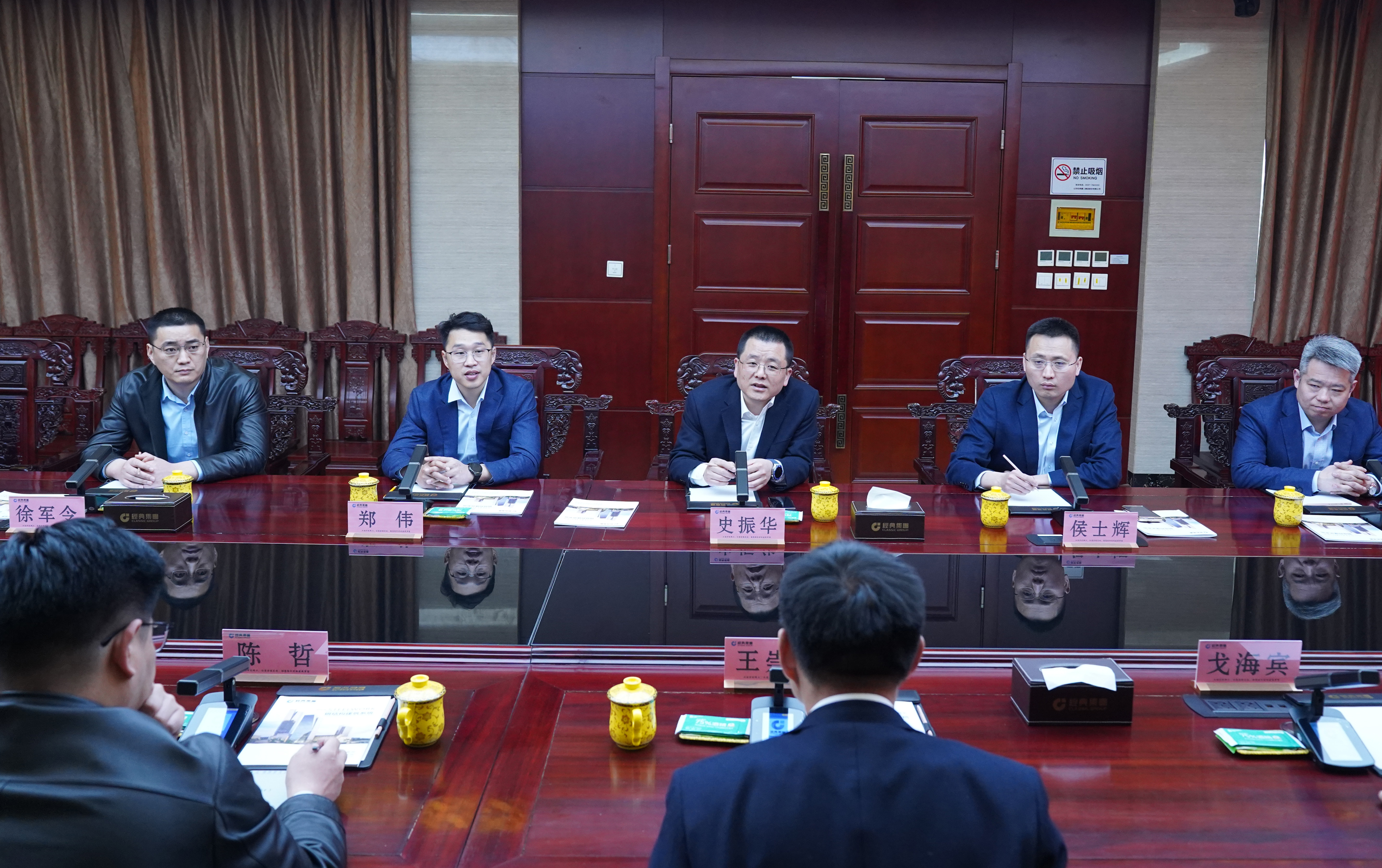 3月22日上午,濟寧能源發(fā)展集團有限公司黨委副書記、總經(jīng)理王崇景,山東融匯物產(chǎn)集團黨委書記、董事長陳哲,金橋煤礦黨委書記、礦長戈海賓,山東融匯物產(chǎn)集團副總經(jīng)理、山東京杭智慧新鋼投資運營公司董事長陳瑞亮等一行到經(jīng)典集團考察洽談合作。