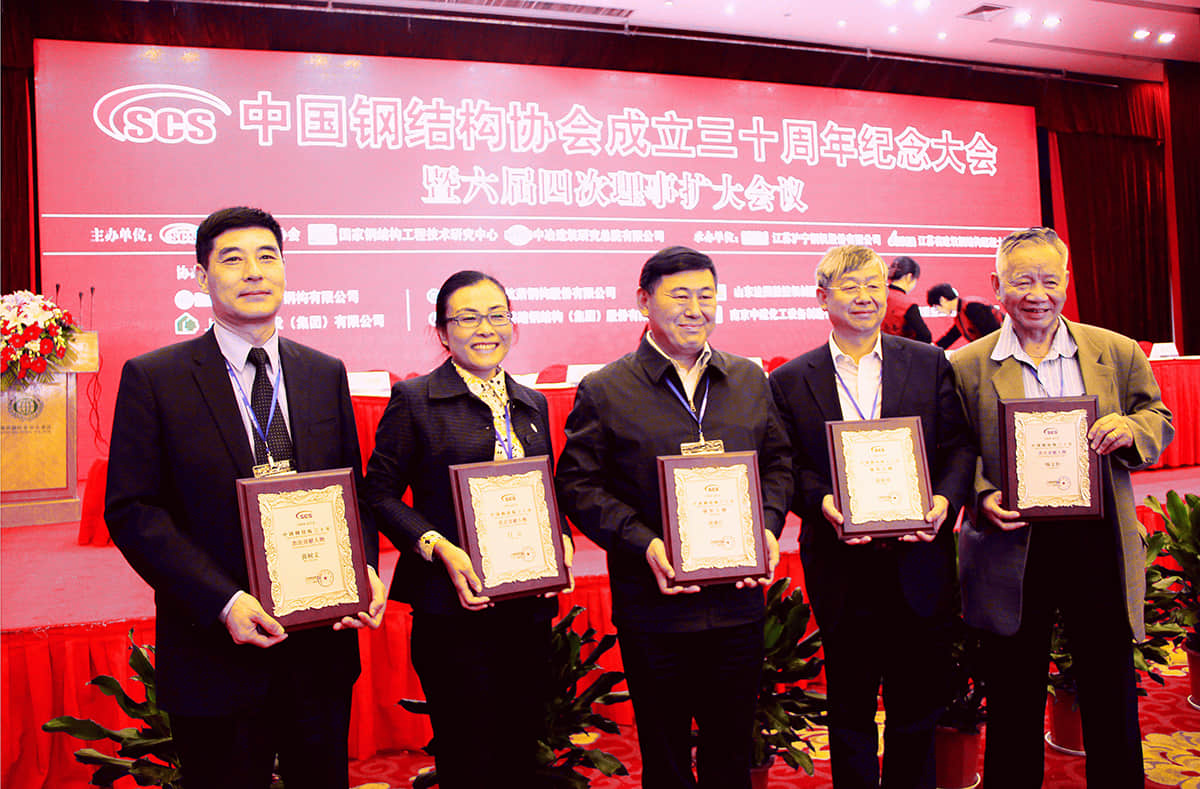 集團(tuán)董事長(zhǎng)與中國(guó)工程院士們一起榮獲中國(guó)鋼結(jié)構(gòu)三十年杰出貢獻(xiàn)獎(jiǎng)