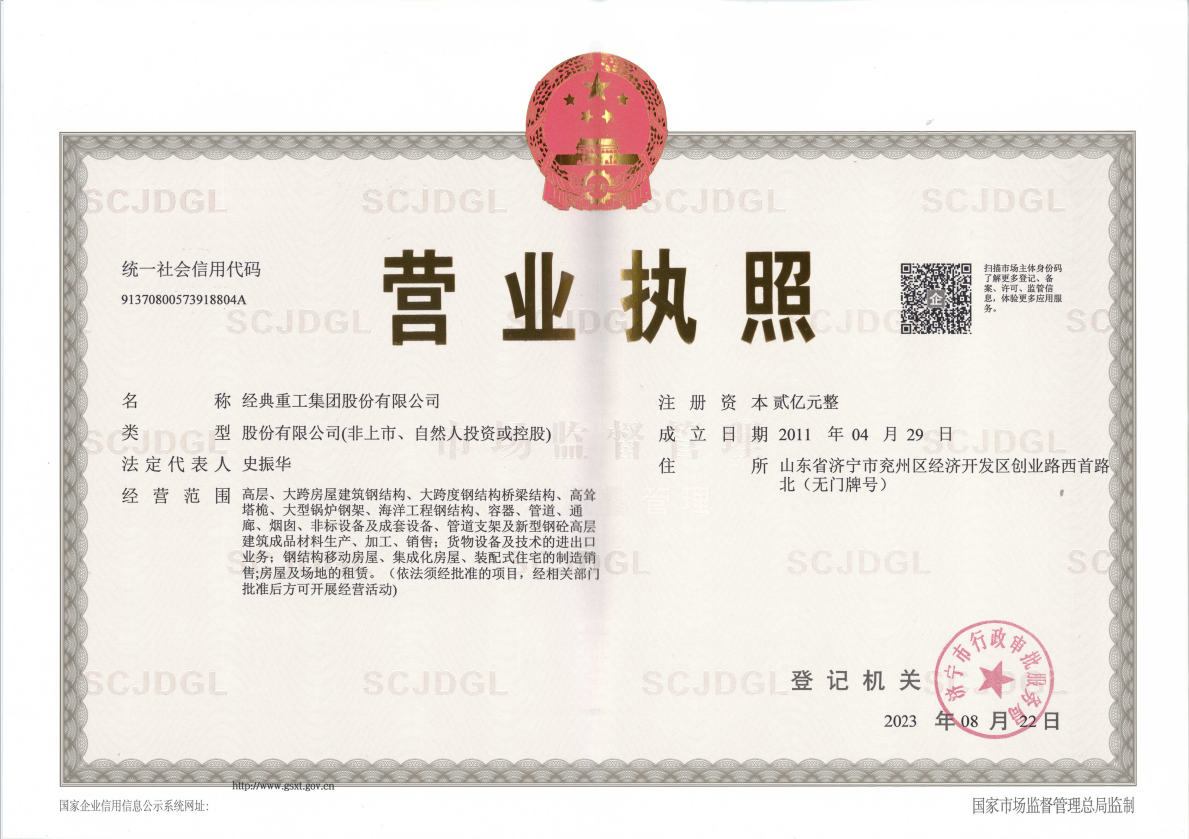 山東經(jīng)典建設(shè)工程有限公司榮升建筑工程施工總承包壹級(jí)資質(zhì)。