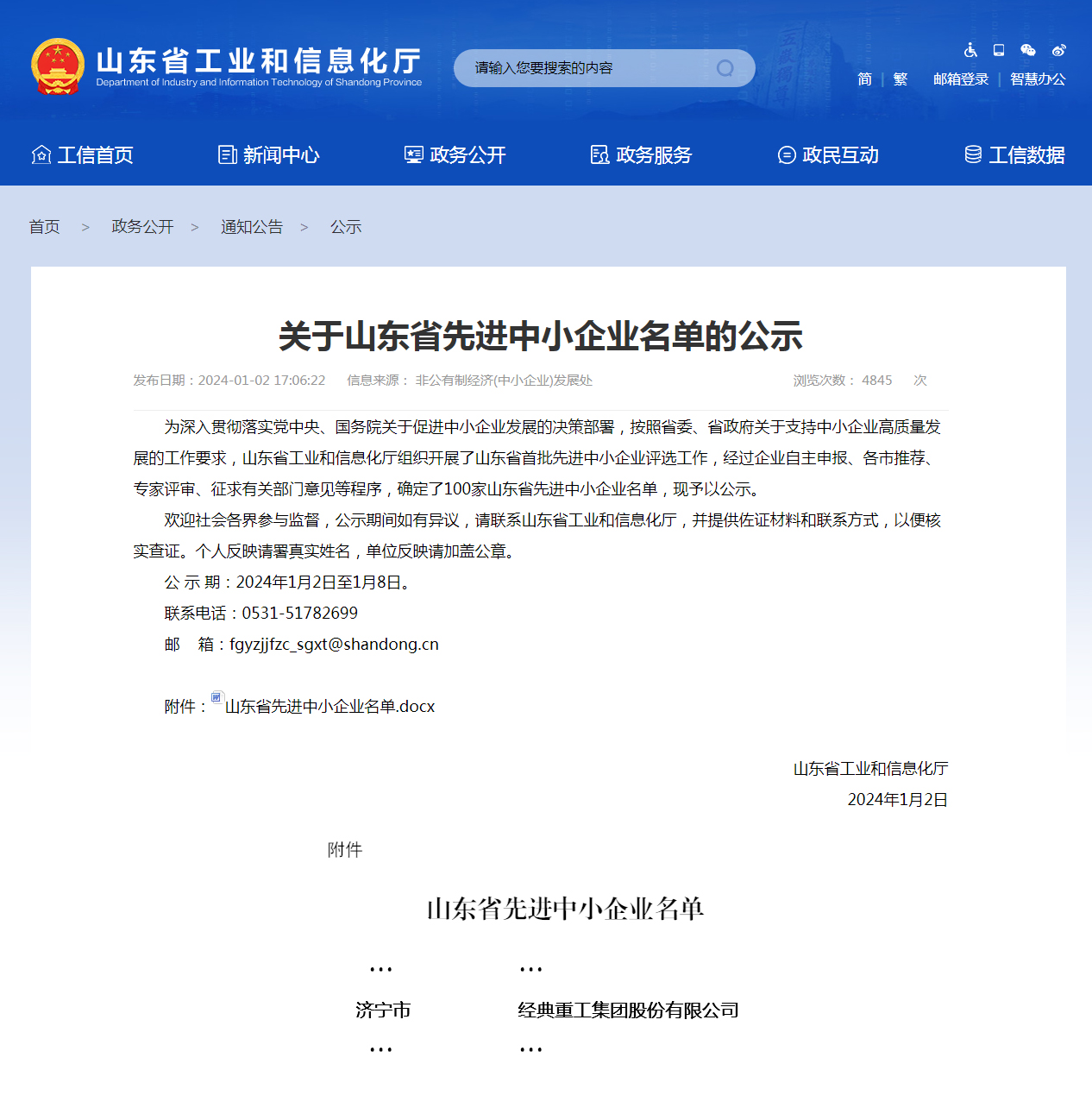 首批上榜!經典集團入選山東省首批先進中小企業(yè)公示名單