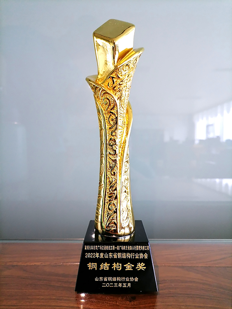 6月16—18日在環(huán)渤海地區(qū)鋼結(jié)構(gòu)行業(yè)發(fā)展峰會暨山東省鋼結(jié)構(gòu)行業(yè)協(xié)會年會上,山東經(jīng)典重工集團股份有限公司承建的淄博火車站南廣場交通樞紐工程——南廣場跨王舍路人行景觀天橋工程榮獲2022年度山東省鋼結(jié)構(gòu)協(xié)會鋼結(jié)構(gòu)金獎。